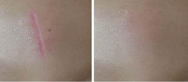 膝盖处之前磕伤,留下了很多疤痕,夏天从来不敢穿短裙,过年回家的时候,朋友推荐了这款产品,就来试试,我膝盖的疤痕现在颜色都已经很深了,刚用了一天感觉很不错,希望不耽误我今年夏天穿裙子!